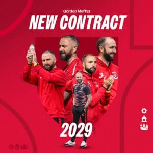 Clydebank FC is delighted to announce manager Gordon Moffat and his backroom team have signed new long-term contracts at the club until June 2029. A fan favourite as a player, Gordon returned to the club in September 2019 and has since helped guide the club to the West of Scotland