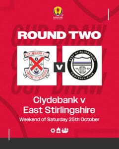 Clydebank have been draw at home to East Stirlingshire in the second round of the Scottish Cup. The tie is set to be played on the weekend of Saturday 25 October.