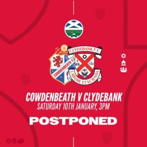 Following a pitch inspection, tomorrow’s trip to Cowdenbeath has been postponed due to a frozen pitch. The game has been rescheduled for next Saturday, 17th January at 3pm.