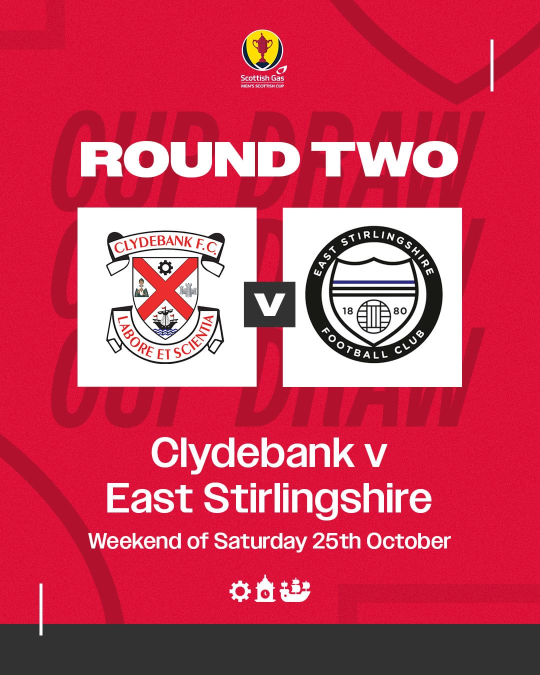 Clydebank have been draw at home to East Stirlingshire in the second round of the Scottish Cup.